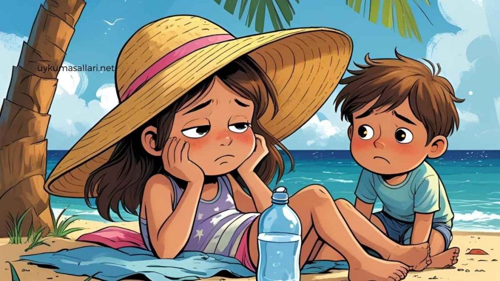 Ela bu uyarıyı dinlememiş. Sabah kahvaltısından sonra hemen deniz kenarına gitmiş. Şapkasını takmadan, güneş kremi sürmeden kumdan kale yapmaya başlamış. Kardeşi Ege ise gölgede kalıp bol bol su içmiş. Öğleye doğru Ela’nın başı ağrımaya başlamış, sonra midesi bulanmış. Kamp görevlileri onu hemen gölgeye alıp annesini aramışlar. Anne baba telaşla adaya gelmiş. Hastanede doktor “Güneş çarpması ve susuzluk” teşhisi koymuş. Ela üç gün boyunca yataktan kalkamamış. Güneşi izlemek bile ona acı vermiş. Arkadaşları oyunlar oynarken, o sadece serin kompreslerle dinlenmiş. Tatilin geri kalanını gölgede geçirmek zorunda kalmış.