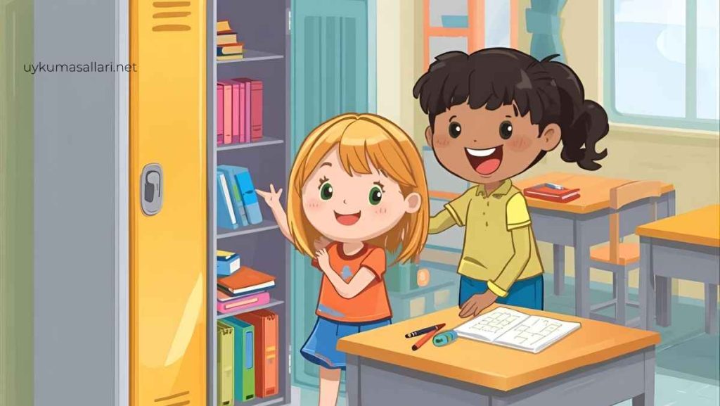 Günlerden bir gün Lina heyecanla okula gitmiş. Çünkü o gün Renkli Dolap Yarışması varmış! Öğretmenleri Nalan Hanım, sınıftaki herkesin dolabını düzenli tutmasını istemiş. “En düzenli dolaba sahip öğrenciye küçük bir sürprizim var,” demiş gülümseyerek. Lina dolabını açmış ve yüzü düşmüş. İçeride bir karışıklık! Kağıtlar üst üste, kalemler kutudan taşmış, bir tane çorap bile dolabın köşesine sıkışmış! “Ahh! Bu dolap bana hiç ödül kazandırmaz,” demiş iç çekerek. Arkadaşları dolaplarını düzenlerken Lina panikle eşyalarını karıştırmış ama nereye koyacağını bilememiş. Sonra en iyi arkadaşı Ece yanına gelip gülümsemiş: “İstersen sana yardım edebilirim. Düzenli olmak eğlenceli olabilir, yeter ki birlikte yapalım!” İkili hemen işe koyulmuş. Ece, “Önce eşyaları türüne göre ayıralım,” demiş. Defterleri bir yana, kalemleri bir kutuya, oyuncakları bir poşete koymuşlar. Lina işin sonunda dolabına bakıp hayran kalmış. Her şey sıralı, her şey temizmiş. Dolabın üstüne kendi çizdiği bir etiket yapıştırmış: “Lina’nın Renkli Düzeni!” Ertesi sabah Lina erkenden okula gelmiş. Defterini bulmak artık saniyeler sürüyormuş. Kalemini aramak yokmuş, silgisi hep aynı yerdeymiş. Nalan Öğretmen sınıfa girince dolapları tek tek kontrol etmiş. Sıra Lina’ya geldiğinde gözleri parlamış: “Lina! Bu dolap harika görünüyor. Tertemiz, renkli ve düzenli!” Lina gururla gülümsemiş. “Artık hiçbir şeyimi kaybetmiyorum öğretmenim,” demiş.